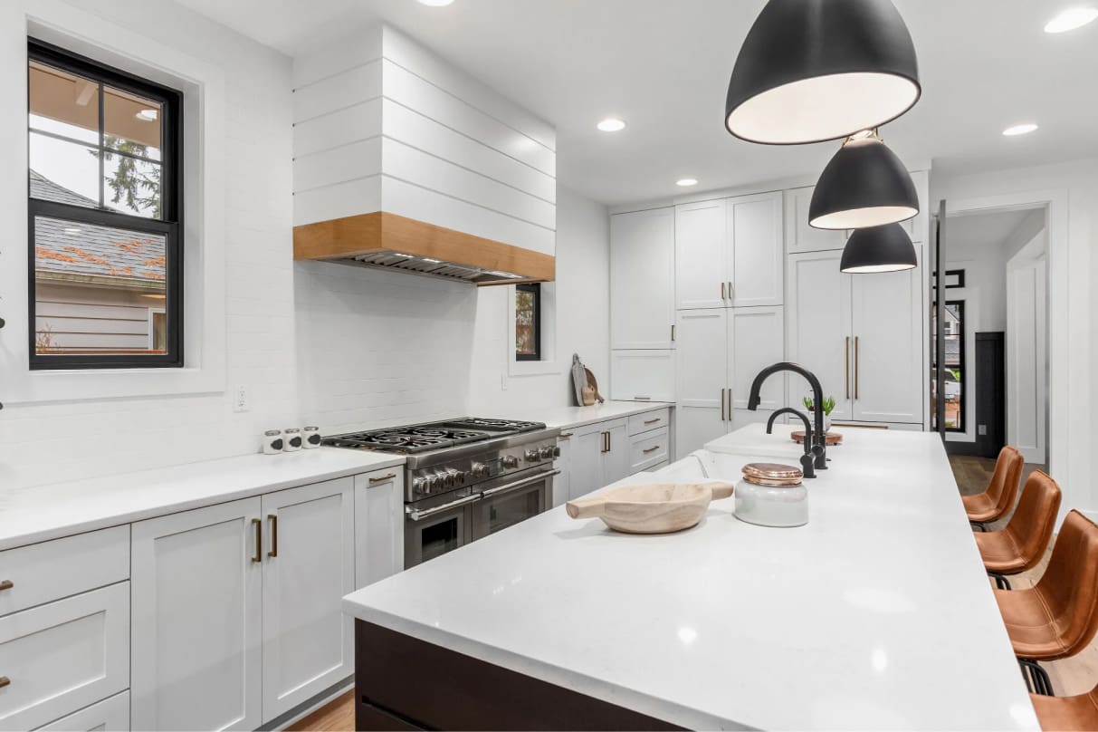 Layered lighting solutions, including pendant lighting, recessed fixtures, and under-cabinet LEDs, designed to elevate both ambiance and usability.